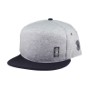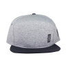 Aba: reta, 6 costuras, cofeccionada em brim (100% algodão) parte inferior e parte superior em tecido Supercap (100% poliéster).