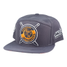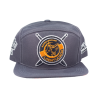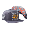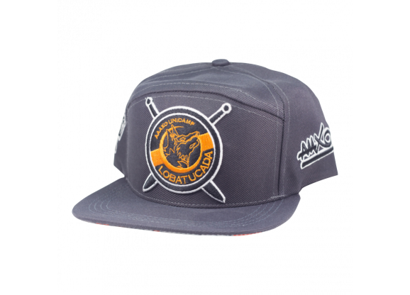 Boné Snapback confeccionado em tecido Supercap 100% Poliéster, botão de metal encapado, regulador de plástico 1 pino, aba com 4 costuras e bordado.
