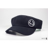 Viseira promocional personalizada produzida em brim 100% algodão, com impressão em serigrafia lto relevo e regulador de plástico -